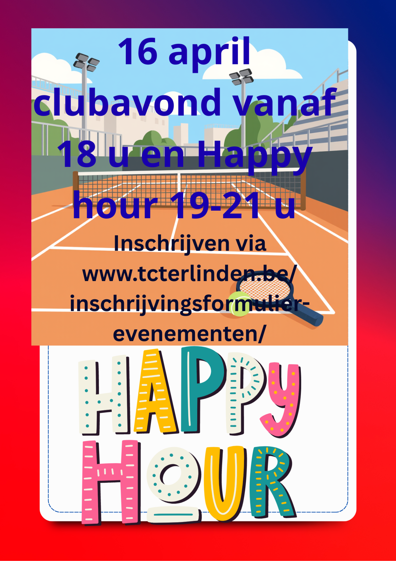 🎾 Clubavond 16 april – kom spelen & geniet van Happy Hour!
